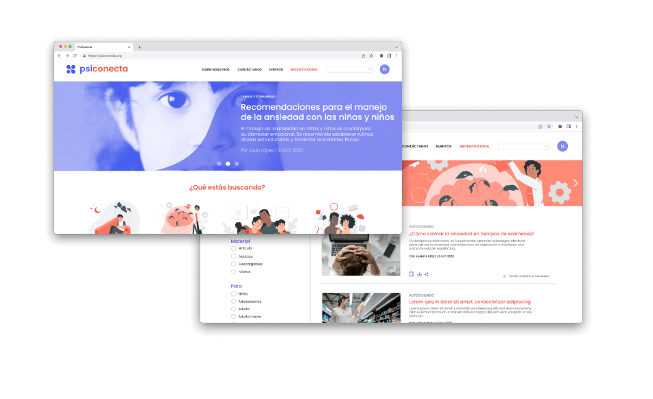Proyecto de propuesta de rediseño para el sitio web de Psiconecta, con nueva identidad visual y responsive para dispositivos móviles.