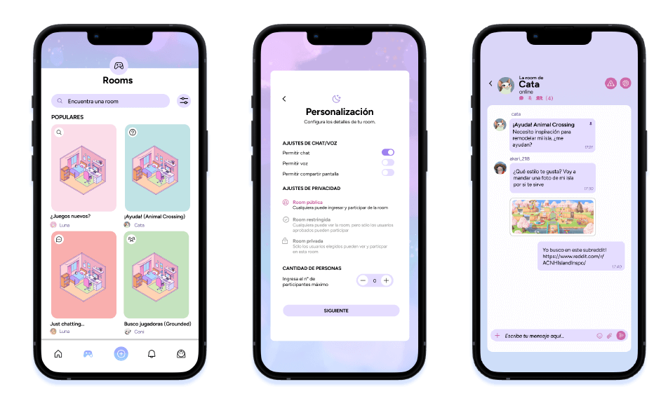 Aplicación de comunicación por chats, diseñada específicamente para las necesidades y experiencias de la comunidad gamer femenina.