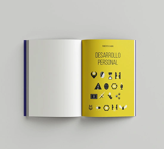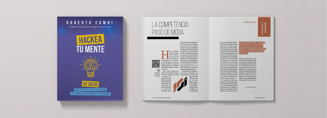 Diseño y diagramación de páginas interiores para el libro "Hackea tu mente" de Roberto Cahmi. El proyecto fue en colaboración con Jorge Cortés, quién desarrolló la portada e ilustraciones del libro, además de guiar el proceso.