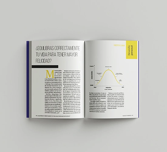 Para este proyecto editorial, estuve encargada de realizar la compaginación de las páginas interiores del libro. El libro consta de 52 artículos, que originalmente eran artículos de blog, los cuales están enfocados en temas de negocios, desarrollo personal y tendencias.